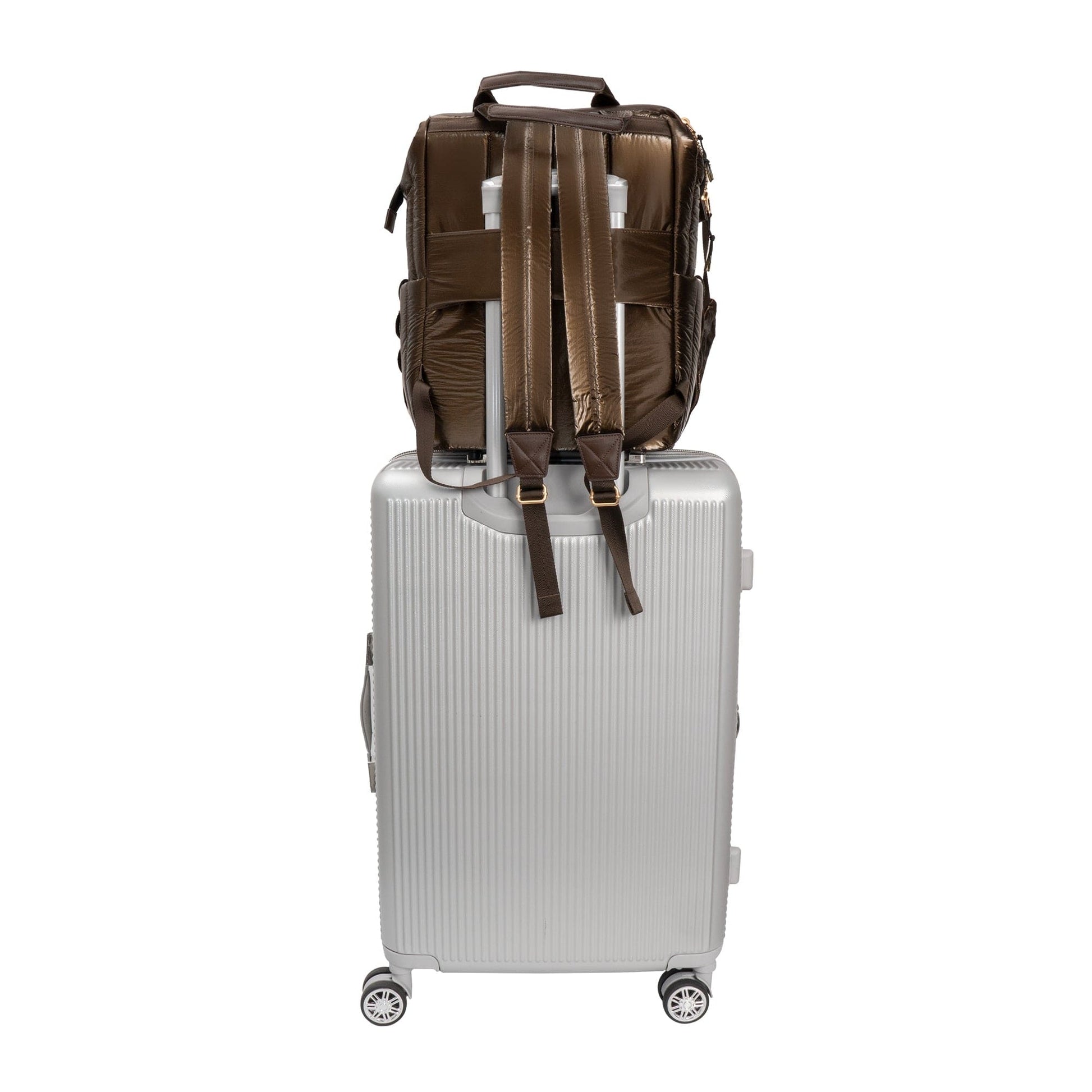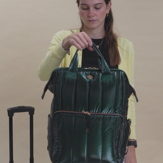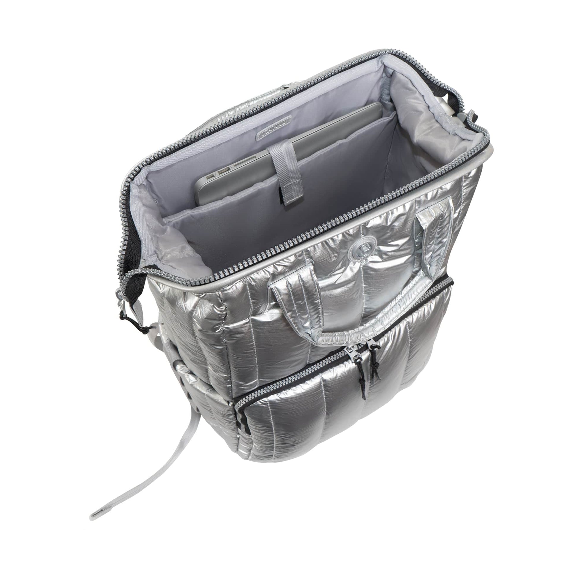 Joan & David Tubular Quilted Metallic Puffer Nylon 18-Inch Workbook Backpack