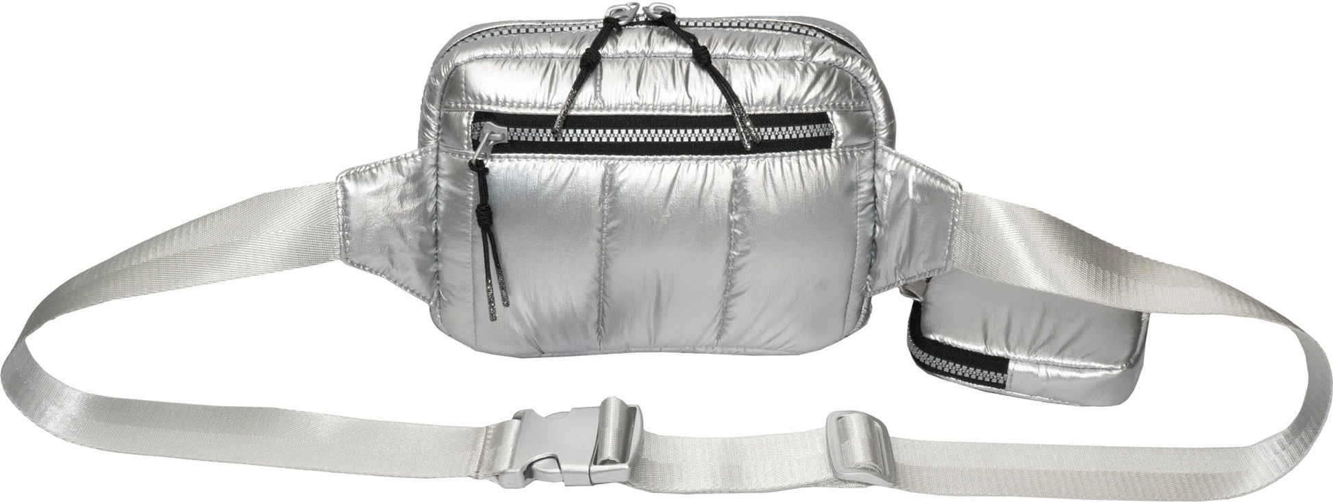 Made from high-quality, tubular metallic parachute nylon, this sling bag combines durability with an eye-catching metallic sheen. The quilted design adds texture and visual appeal, making it a standout accessory for any occasion.