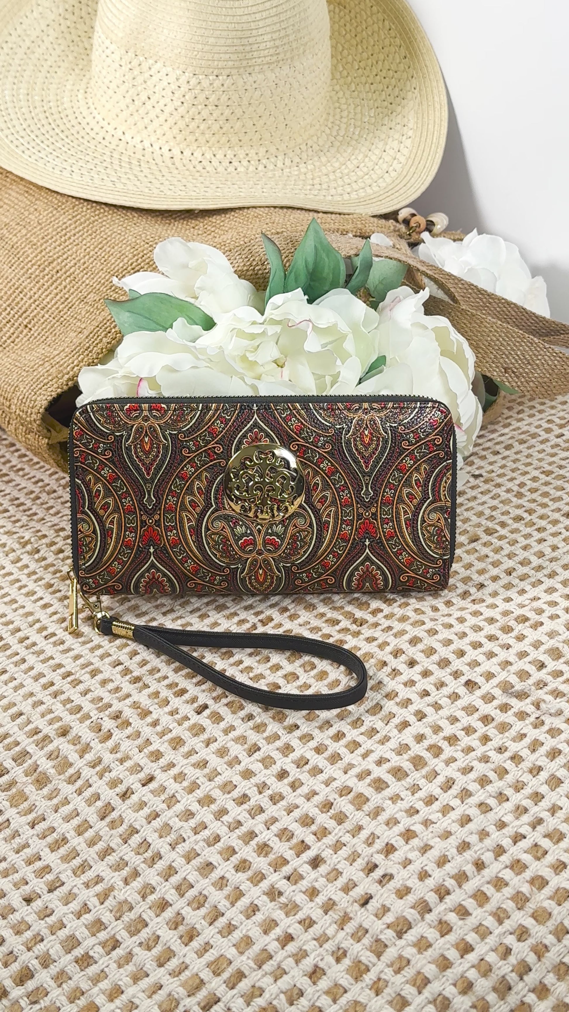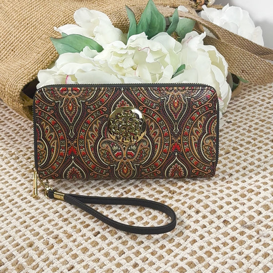 Rebecca & Rifka Paisley Print Medallion Zip Wristlet Wallet